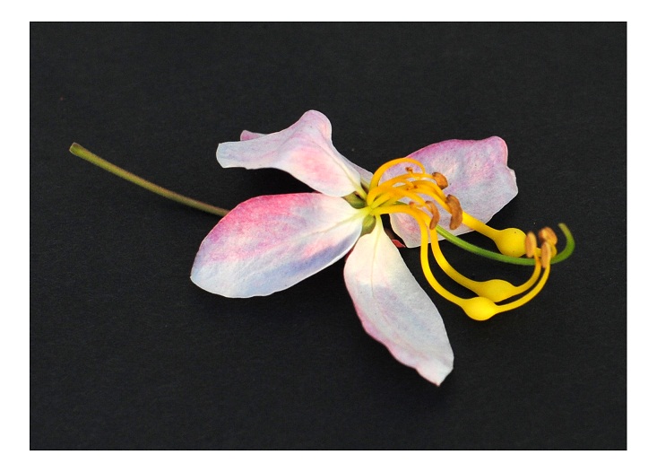 Cassia javanica flower. Notice the yellow stamens with the swelling on the three longer ones. |