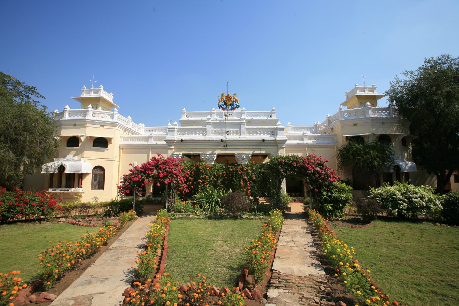 Lunch is prepared with local flavours and in traditional style by the palace kitchen from vegetables fresh from the garden. Paddy fields and mango-orchard lands stretch behind the Palace. The elegance and stateliness of the dining room only heightens the pleasure of eating food naturally grown and freshly plucked.