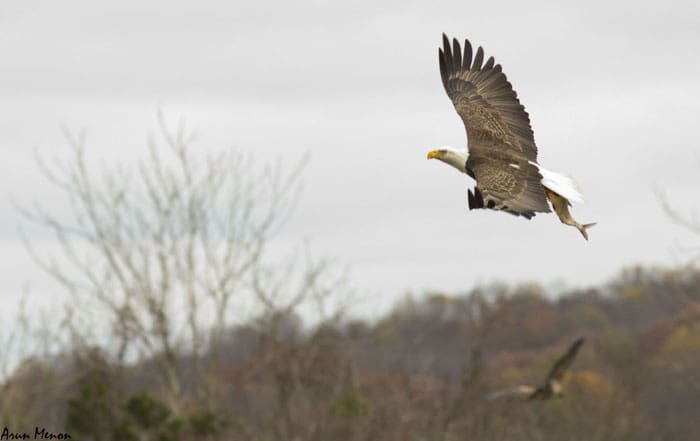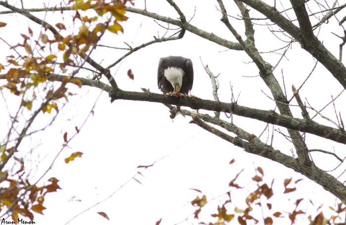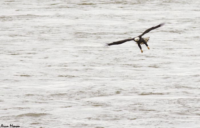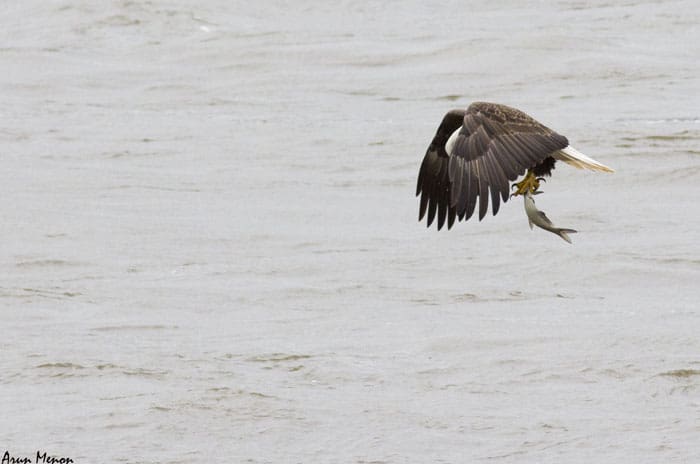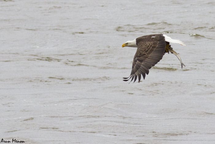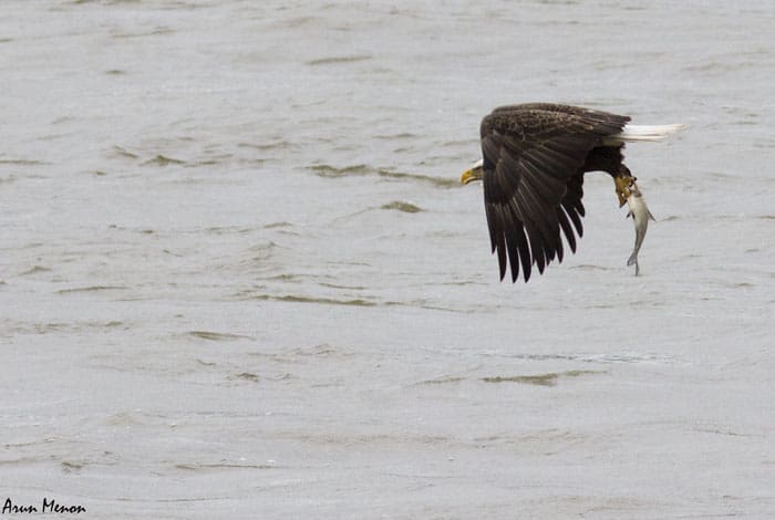 Within the next couple of minutes, however, I realized I could not just spot but also observe the eagles very well as they flew by the parking lot over the Susquehanna river. And it was not just an eagle or two, but several. There were also quite a few Black vultures and a lot of gulls and terns. For the next three hours or so, I had a wonderful time watching the eagles fly by, perch on the trees, and even fish! Unexpectedly, I also got some decent shots.
