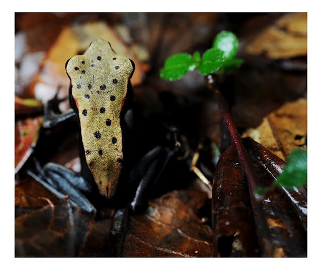 It’s tiny and blends in completely with the leaf litter but once you spot it, the Bicoloured Frog is unmistakable