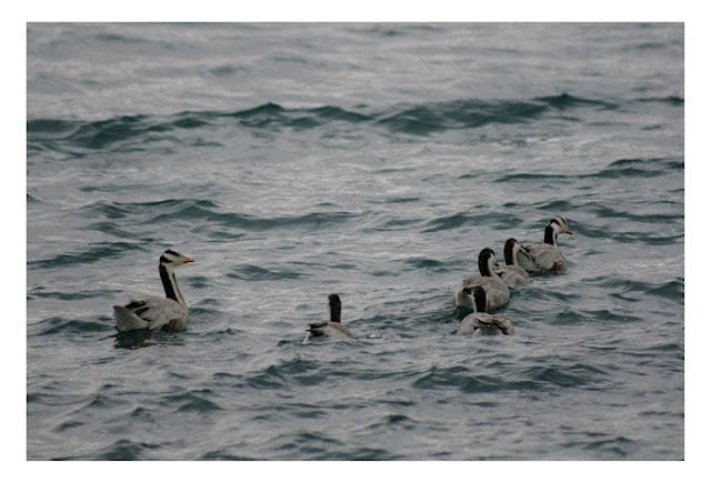 Once winter grips the plateau in early October, the Bar-headed Geese will fly inland to Assam, northern India and right down to Tamil Nadu in peninsular India. Along the way, as they disperse, large congregations can sometimes be seen, and one of the birds’ favoured sites is the Pong Dam in Kangra (Himachal Pradesh) where upto 30,000 geese flock. They stay on till late April before heading back to their breeding grounds.