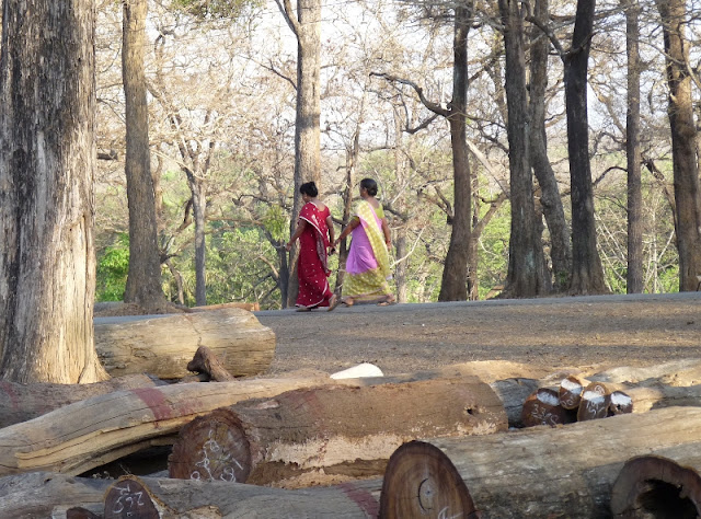 Against the relentless symphony of cicadas an Indian Roller sallied about, flaunting its brilliant cerulean hues in vain as we ignored it for the hornbills. A troop of Hanuman Langurs, comprising overgrown adult males, subadults and females with infants, pillaged the trees of fruit and leaves. Giant squirrels stuffed their mouths. Mynas and crows hung around, unable to resist the opportunity to dig in.