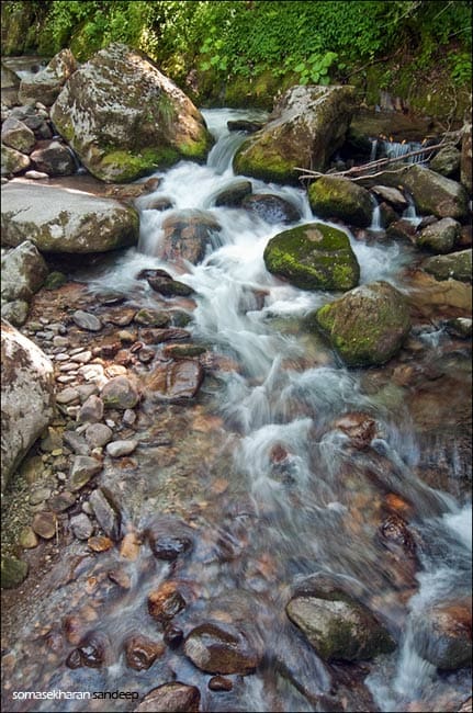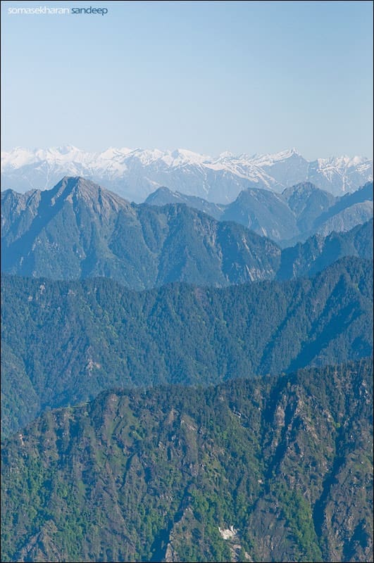 Arun is pulling himself up, clutching onto some grass roots. A couple of porters run to him and tell him not to – that the grass roots could come off under his weight and send him rolling off. Beyond a turn, Beej who was leading the way looks back at me and implores, “Someone please tell me this is not the way.” I peer in and see a dizzying gorge to our right, sloping away at about 60 degrees with pool after pool of snow dotting it. Charan emerges like an angel and points “This way” in the opposite direction.