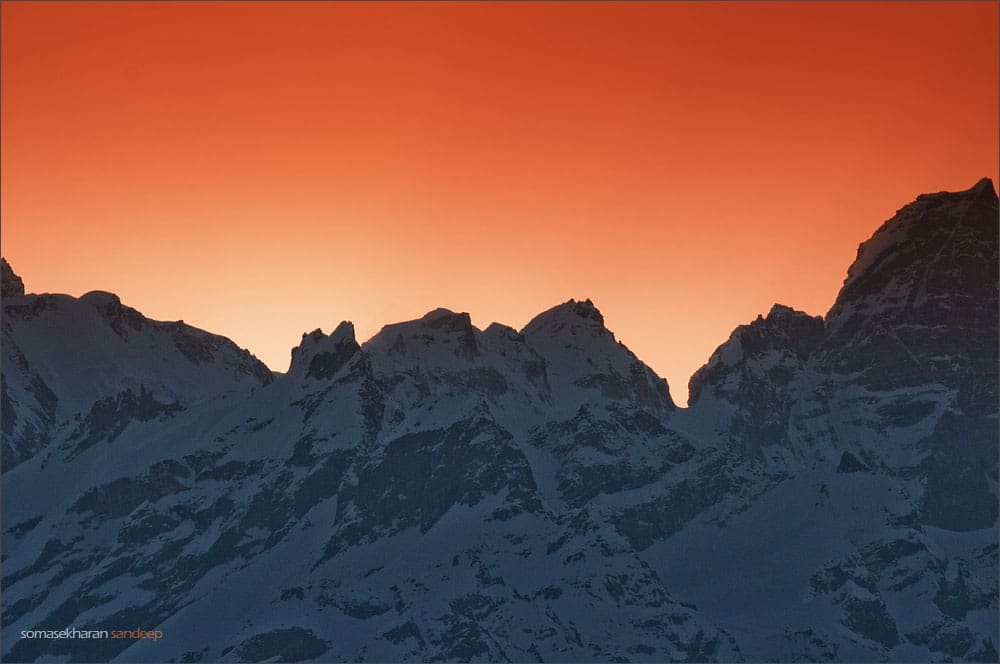 We wake up to have more sattu, and watch as Charan come downhill after his recon mission. He looks at us and shows the “dead ball” sign as a cricket umpire might gesture. “Thick snow ahead on the ledge; the pass won’t be open for another month and half,” he mutters. “For the last three years, the path was open in summer. This time we have had too much of snow in the winter.” We sit around a fire deliberating this turn of events; we must come up with an alternate plan.