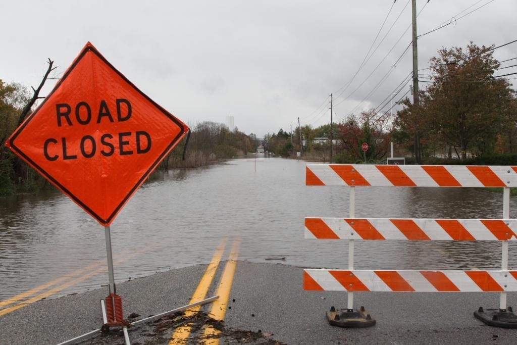 The parking lot and the marsh have become one.