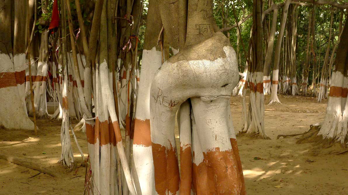 Mataji, the self-appointed priest, has taken over the upkeep of the shrine and its precincts. The warning against littering, cutting, swinging on, or disfiguring the tree is written on the shrine wall at her behest. Her presence has helped – the banyan seems well protected (there is no fencing or boundary and no broken branches or slashed roots) and the area is surprisingly clean.