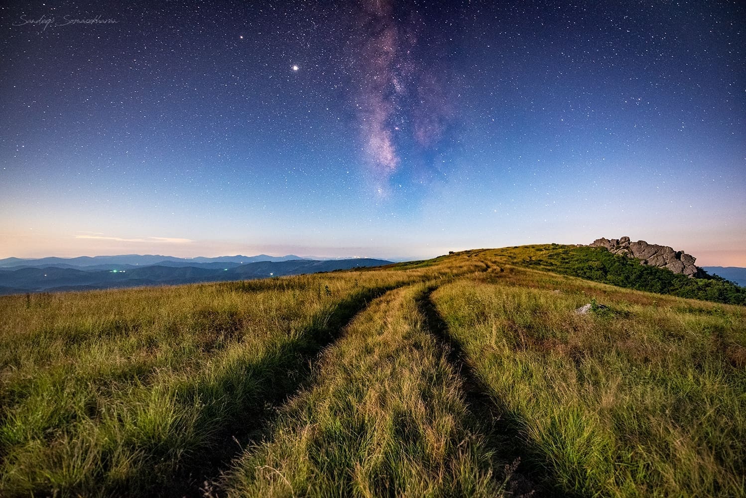 I park my car and look around. In the distance, there is a glow of the headlamps of Anoop and Jai. I am on White Top Mountain, on the fabled Appalachian Trail. Here, the skies are so dark that it doesn’t take a second for the eyes to discern the Milky Way towards the south. This is late August, and the Milky Way has shifted orientation, now cleaving the star-studded night sky in two. I take a couple of shots and walk down the trail with Anoop and Jai, to a spot a few yards from the trail. From here, we have an overlook that showed the layers of mountains that lie ahead, and the outstretched arm of our galaxy.