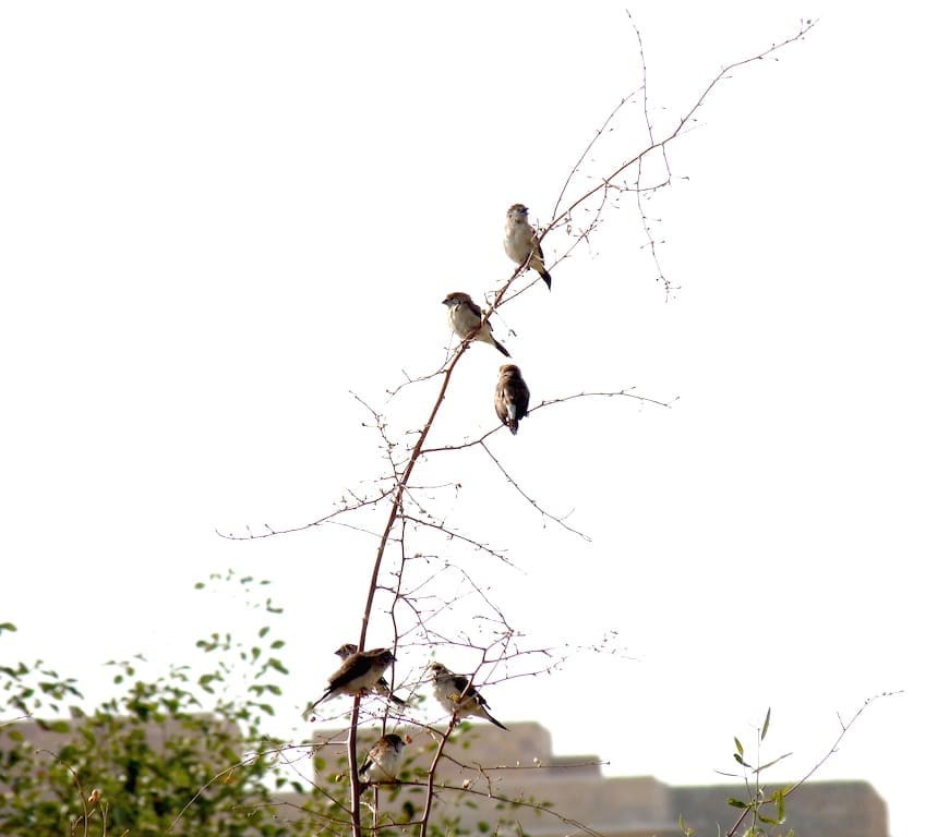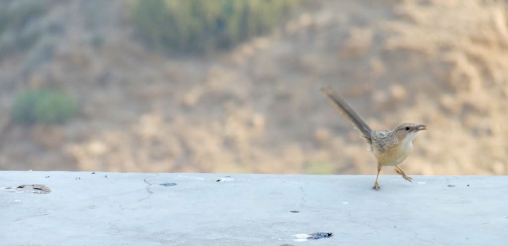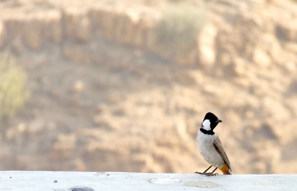 The incredible desert landscape from atop a dune at Dechu, en route to Jaisalmer from JodhpurSunset on the dunesA butterfly feeds on nectar from the blossoms of a Khejri tree (Prosopis cineraria)The Jaal Tree (Salvadora oleiodes), one of the principal shade-givers of the dry, arid desertA pigeon naps inside an ornate cubbyhole in the vicinity of Jaisalmer’s Golden FortEye, gazelle, delicate wanderer. The Chinkara is so much part of this landscapeNot entirely sure, but it looks like a Cinereous VultureNow, isn’t that the uncommon Common Babbler?A Common Buzzard wheels in the skyThe Khejri tree is a leitmotif of this desertThe Common Raven (Corvus corax subcorax) floated in the air like a great black kiteKhejri trees are lopped for firewood. Here’s one recumbent besides Jazia Talao oasisWintering Demoiselle Cranes at KheechanFeral Pigeons enjoy a splash. I looked eagerly for the Yellow-eyed PigeonSparrows arrive at teatime, for the pakoras!The Indian Desert Jird, one of my favourite rodentsBeneath this Jird is a complex system of burrowsIndian Silverbills look like IkebanaAn Isabelline Wheatear against the dramatic desert landscapeA Painted Grasshopper is gaudiness itselfA Rose-ringed Parakeet makes itself at home upon Osian’s red sandstone monumentsCrowning gloryA Short-Toed Snake Eagle surveys its domainA solitary Indian Silverbill waits to join its flockA Variable Wheatear on its perchThe adorable and daring White-eared BulbulThis White-eared Bulbul boldly went where no bulbuls would dare to go – to the basket of raisinsA White Wagtail against a screen of mist in KheechanA White-throated Kingfisher takes advantage of nearby water bodies