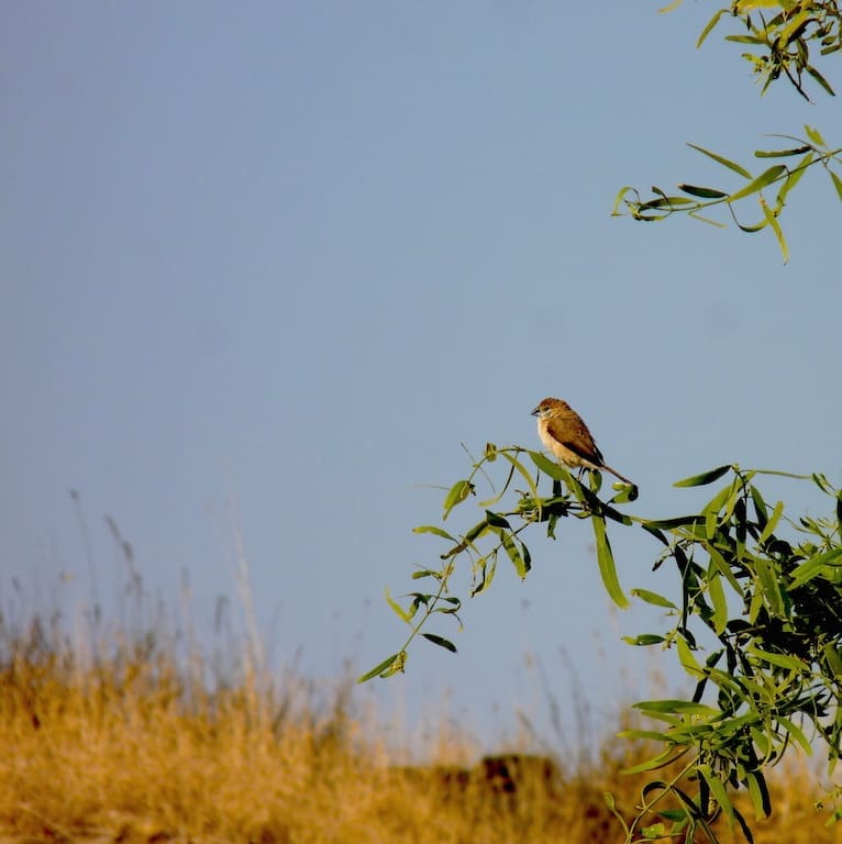 A solitary Indian Silverbill waits to join its flock