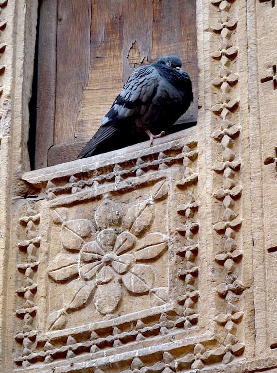 A pigeon naps inside an ornate cubbyhole in the vicinity of Jaisalmer’s Golden Fort