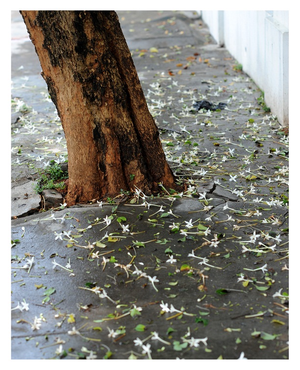 | The beautiful Millingtonia hortensis in the school campus, chopped and piled up by the road side |